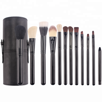 Chuyên Nghiệp 12-Mảnh Trang Điểm Bàn Chải Đặt Du Lịch Kích Thước Gỗ Xử Lý Khuôn Mặt Phẳng Mỹ Phẩm Kit PU Da Chủ Fan Bàn Chải Kem Che Khuyết Điểm